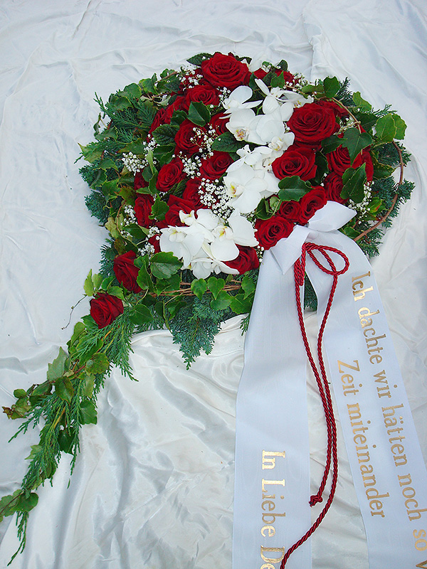 Blumen trösten. Diese Aussage verwirklicht sich vor allem beim letzten Weg zur Ruhestätte. Einfühlsame Beratung bei der Auswahl der Blumen und eine individuelle Abstimmung auf den Verstorbenen ist uns eine Herzensangelegenheit.